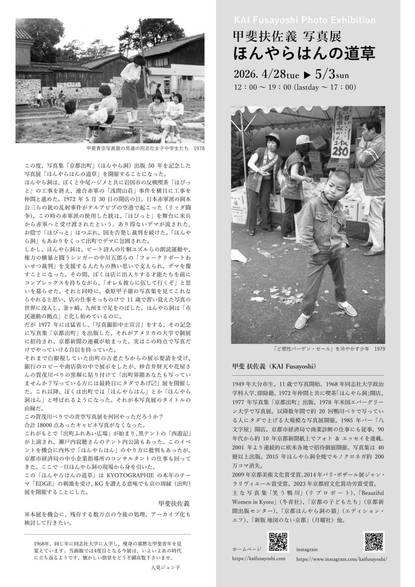 2026年3月13日(金)〜29日(日) 水曜休廊 - 甲斐 扶佐義 写真展 ほんやらはんの道草 ギャラリーヒルゲート